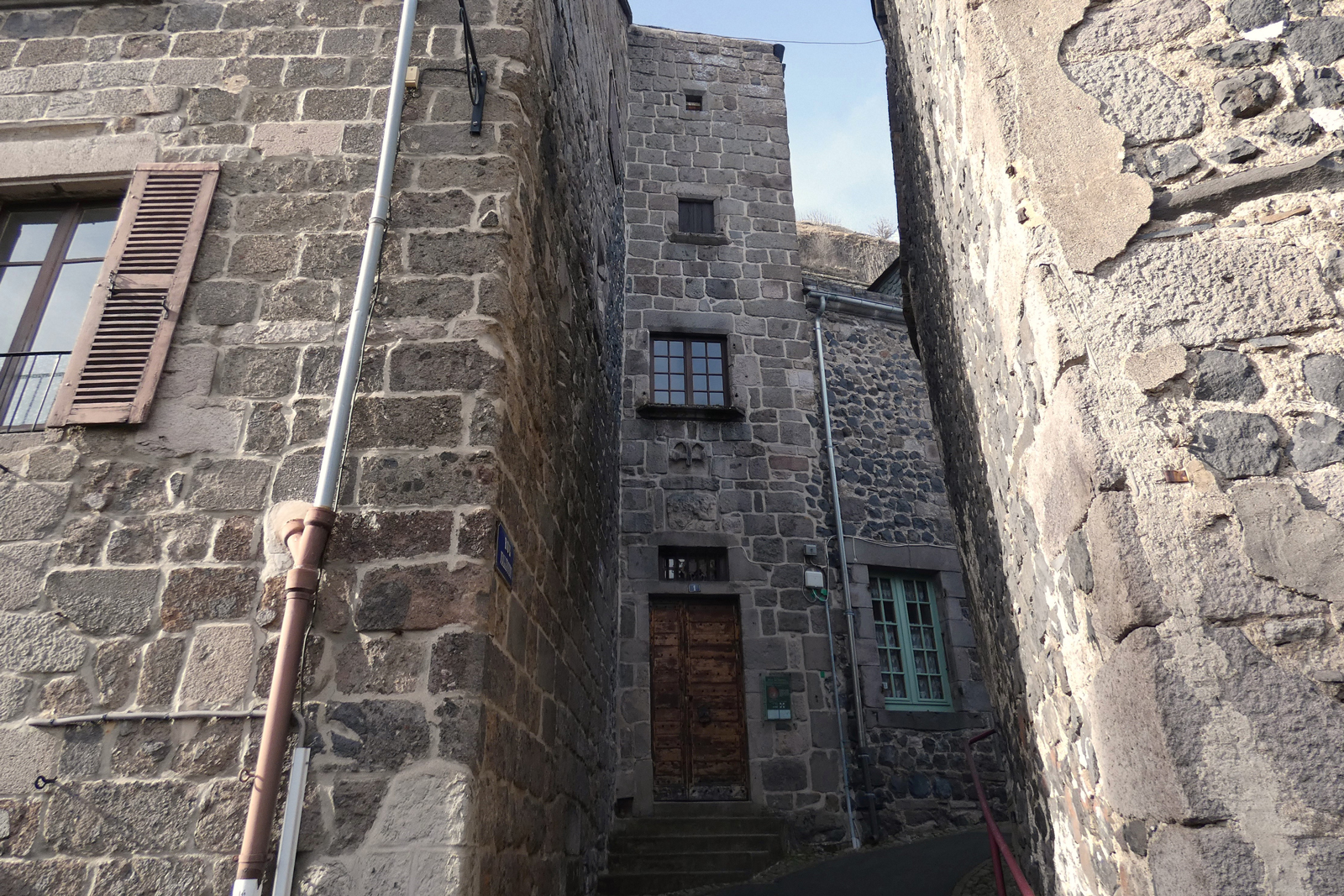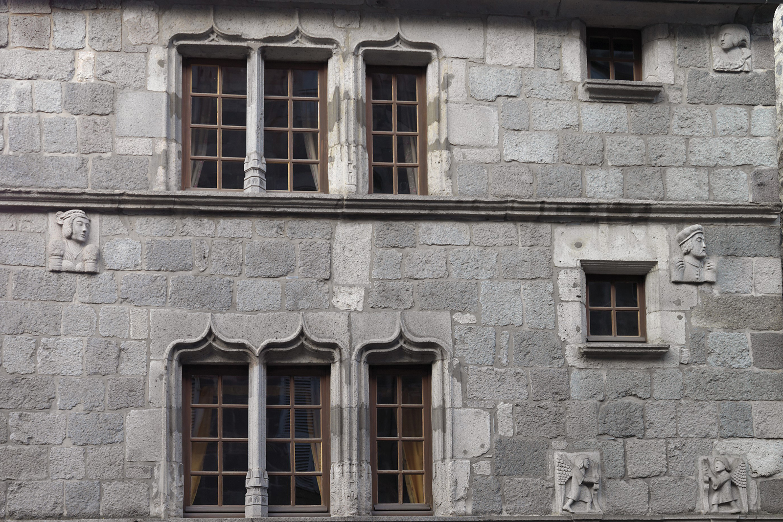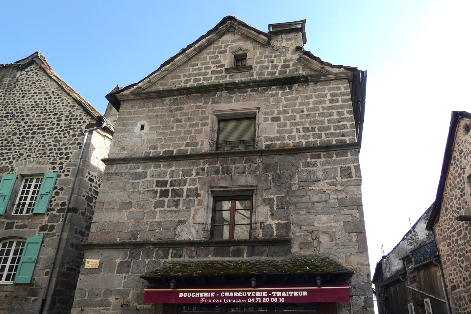 Maison style Renaissance dont l’appareillage taillé dans le trachyte a permis de créer cette façade riche d’ornements : bandeaux moulurés, échauguette en encorbellement, échauguette en saillie dans l’angle, pilastres avec chapiteaux toscans, fenêtres à meneaux, modillons à double volute. Portes à frontons triangulaires dont les tympans sont écussonnés.