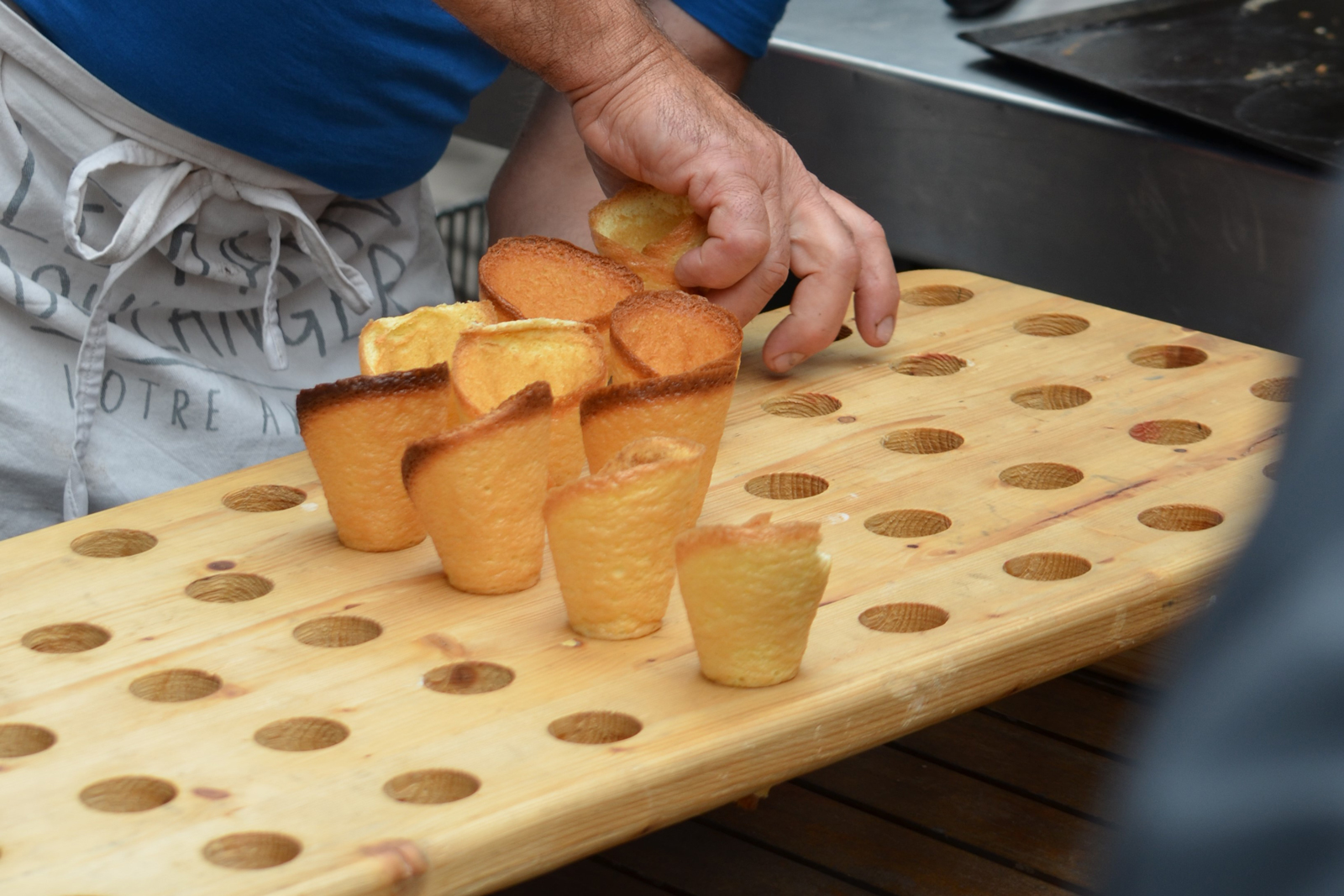Le Cornet, gâteau sec roulé à chaud en forme de petite corne, est une spécialité pâtissière des pâtissiers et boulangers muratais, devenue un incontournable dessert cantalien. La tradition remonterait au XIXe siècle, quand les grands-mères préparaient ce biscuit sec conique qu’elles glissaient ensuite dans les garde-mangers que portaient en bandoulière les petits vachers chargés de garder les troupeaux en montagne, à l’instar des cornes à sel. Cette gourmandise emblématique est célébrée tous les ans en septembre, lors de la Fête du Cornet, événement festif et savoureux où dégustations côtoient spectacles de rue dans le décor de la cité médiévale.