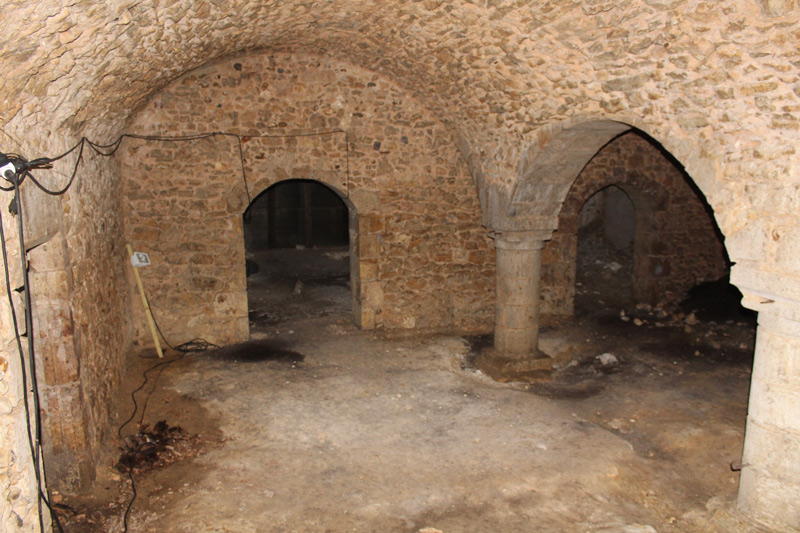 Ces anciennes caves de l’abbaye sont creusées sous les bâtiments de la première cour, entre le mur d’enceinte et le pavillon Louis XIII. Ce sont deux vastes salles voûtées, séparées par une rangée de piliers massifs sur lesquelles s’ouvrent des caves plus petites. Dans son état actuel, le cellier date vraisemblablement du XIIe ou XIIIe siècle. La travée ouest pourrait être antérieure.