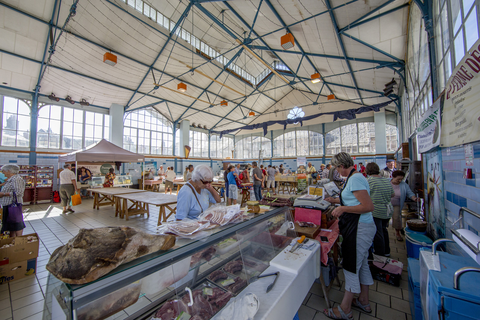Bel exemple des constructions à charpente métallique de type « Baltard », la halle achevée en 1891 fut restaurée en 1988. Elle est inscrite à l’Inventaire Supplémentaire des Monuments Historiques en 1991. Dans ces halles où tout espace était compté, une colonne en fonte remplaçait un mur pour gagner en emplacement pour le commerce. Élément majeur, le fer était gage de résistance au feu et permettait de créer de superbes baies vitrées, inconnues à cette époque. Au rez-de-chaussée, se trouvaient les « docks à fromages ».